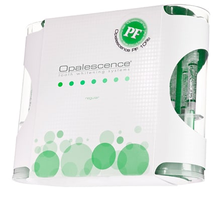 Opalescence Take Home Whitening Gels are only available from your dentist, who will supervise your treatment from initial consultation through completion. The sticky, viscous gel won't migrate to gums and most formulations include Potassium Fluoride (PF), which helps to improve oral health by strengthening enamel, decreasing sensitivity and offering increased cavity prevention.